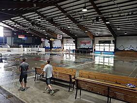 Wie man auf den Bildern unten sieht ist die Fläche noch nicht mal vollständig getrocknet, trotzdem haben es rund 30 unermüdliche Helfer in kürzester Zeit geschafft die Bande, Netze, Zeitnehmer-Box, Spielerbänke, etc. abzubauen und das Icehouse einer großen Lagerhalle ähneln zu lassen. Der besondere Dank gilt dabei neben Fritz Haaf (dem Vorstand des ECE) vor allem der 1. Mannschaft der Eisbären sowie den Rhein-Neckar Gladiators. Denn die Gladiators haben sich dabei hauptsächlich dem Bandenabbau angenommen, damit Sie diese im Gegenzug unentgeltlich übernehmen und auf Ihrem eigenen Hockey-Platz in Ketsch wieder aufbauen können. Da ursprünglich als einzige Alternative die Verwertung der einzelnen Banden-Bestandteile im Raum stand, haben wir mit dieser Option für alle die bessere Lösung gefunden! Denn so wie die SAP-Arena den ECE mit der Bande unterstützt hat, konnte dies nun der ECE für die Gladiators tun.