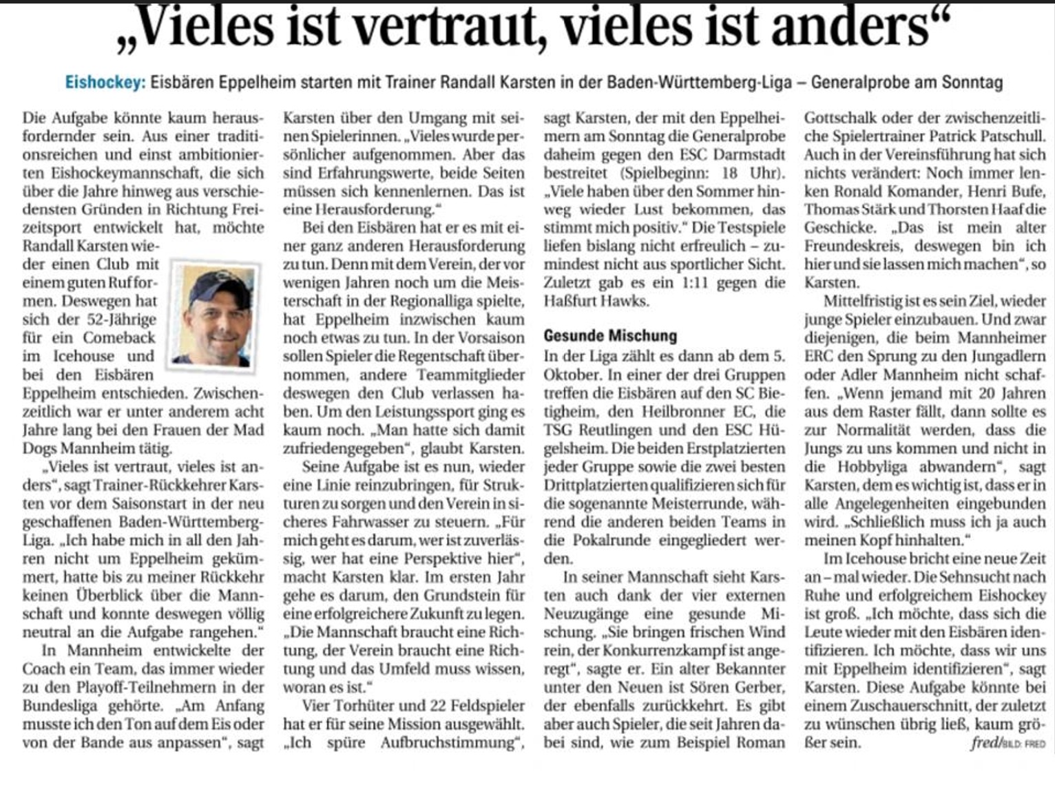 Unser Coach Randall Karsten ha vor dem Abschluss der Vorbereitung mit der Schwetzinger Zeitung gesprochen