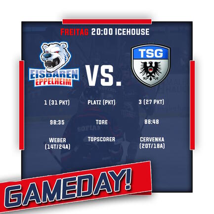 Die Eisbären sind jedoch nur am Freitag gegen die TSG gefordert und wollen ihre Heimstärke beweisen und den Verfolger auf Distanz halten. Die letzten Ergebnisse, insbesondere im heimischen Icehouse sollte die EIsbären beflügeln, auch das Rückspiel gegen die TSG für sich entscheiden zu können. Dabei gilt es insbesondere, wie im Hinspiel beim 9:4-Erfolg den LL-Topscorer Cervenka in den Griff zu bekommen und seinerseits die eigenen Torchancen zu kreiieren und zu nutzen, um auch im 7. Heimspiel als Sieger vom Eis zu gehen.